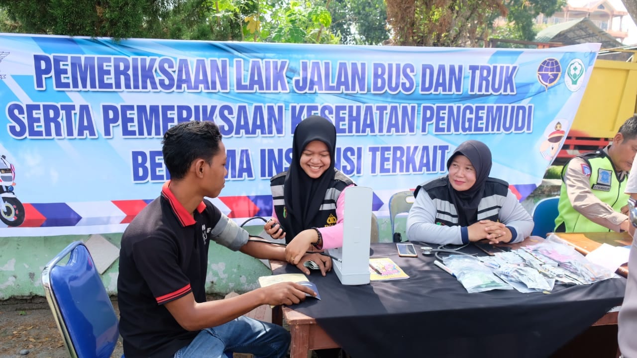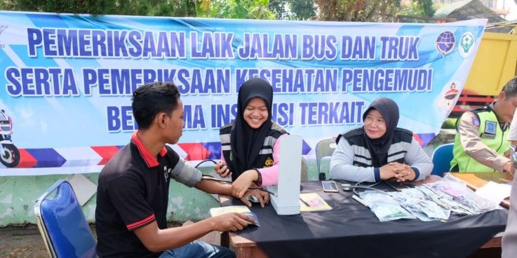 TASLABNEWS, TANJUNGBALAI – Dalam upaya menjamin keselamatan bagi pengguna jalan raya, petugas Sat Lantas Polres Tanjungbalai kerjasama dengan instansi terkait lainnya melakukan pemeriksaan layak jalan terhadap kenderaan bermotor pengangkutan seperti bus dan truk termasuk kesehatan dari pengemudinya.