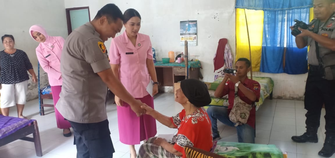 Di panti yang dihuni oleh 47 orang lanjut usia (lansia) ini, Kapolres memberikan sembako berupa beras, telur serta uang tali asih kepada para lanjut usia yang tinggal di panti tersebut.