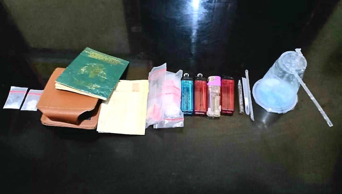 Di rumah tersebut ditemukan barang bukti, berupa dua helai plastik klip transparan ukuran sedang yang berisikan diduga Narkoba jenis Sabu dengan berat brutto 1,55 Gram, satu set alat hisap sabu/bong, satu batang pipa kaca/pirex, dua batang pipet plastik yg ujungnya diruncingkan/sekop, empat mancis yang telah dimodifikasi, dua bal plastik klip transparan kosong, satu dompet dan buku nikah atas nama Erwan.