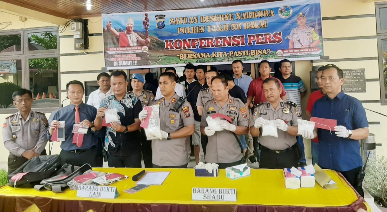Dalam konferensi pers yang dilakukan di Lobi Mapolres Kota Tanjungbalai, Selasa (11/2/2020) pukul 08.30 Wib, Kapolresta menerangkan dari tersangka Musassirin alias Basyir (31), beralamat Dusun Tanjung Desa Bandrong Kecamatan Preulak, Kabupaten Aceh Timur disita satu bungkus besar plastik transparan diduga berisi narkotika jenis sabu berat Kotor 1.050 Gram, satu unit Hand Phone Merek Samsung Warna Putih, satu potong Handuk Warna Biru dan satu Tas Ransel Warna Abu abu Merek xiuxianbeibao.