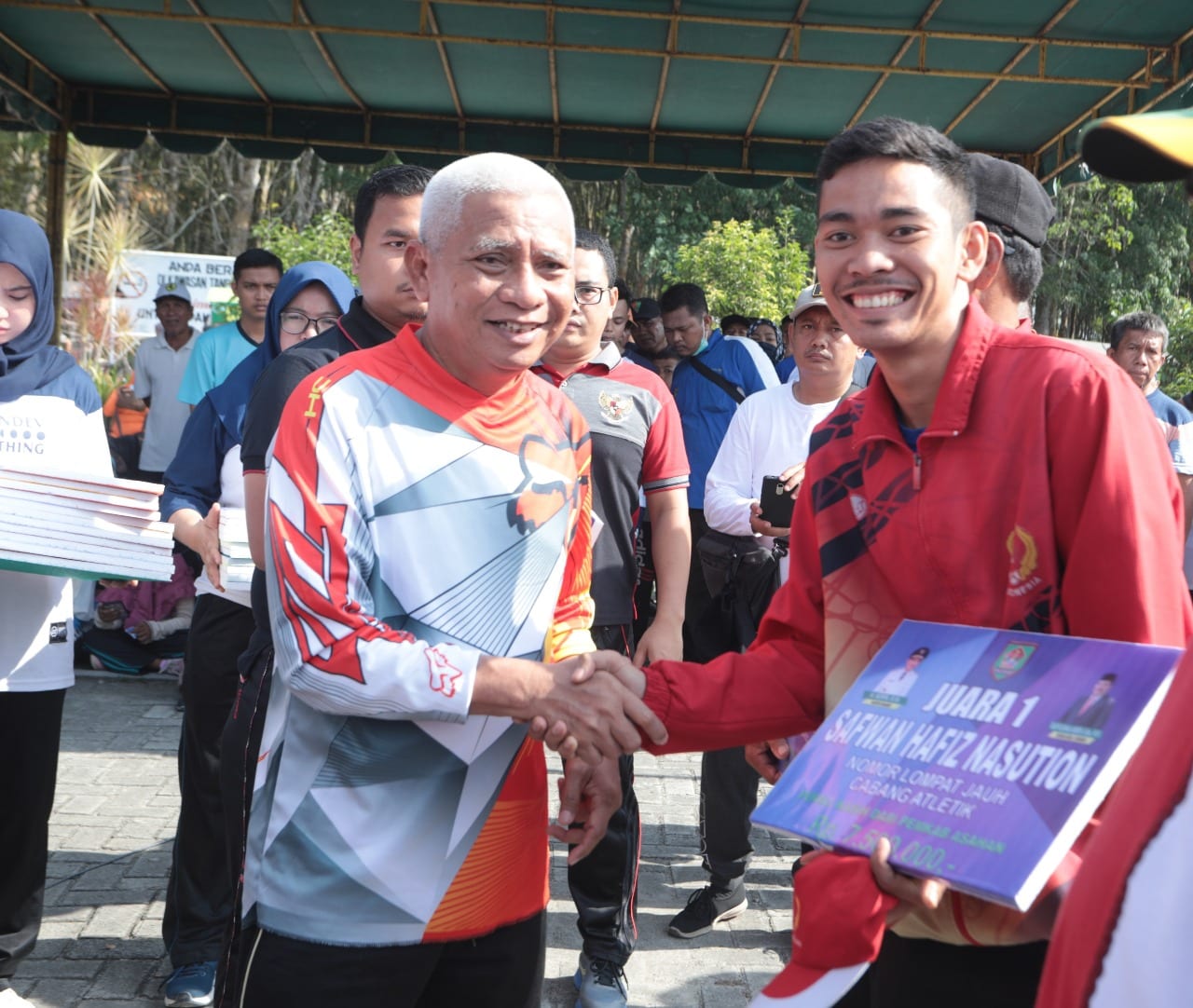 “Kegiatan gerak jalan santai juga dirangkai dengan penyerahan penali kasih kepada 109 orang insan olahraga yang terdiri dari 75 orang atlit dan 34 orang pelatih yang berprestasi pada Porprovsu 2019 dari 13 cabang olahraga yakni, cabang atletik, pencak silat, bulutangkis, sepakbola, tinju, binaraga, bilyard, karate, bola voly, catur, taekwondo, tenis meja dan gulat” tutup Plt Kadis Porapar.