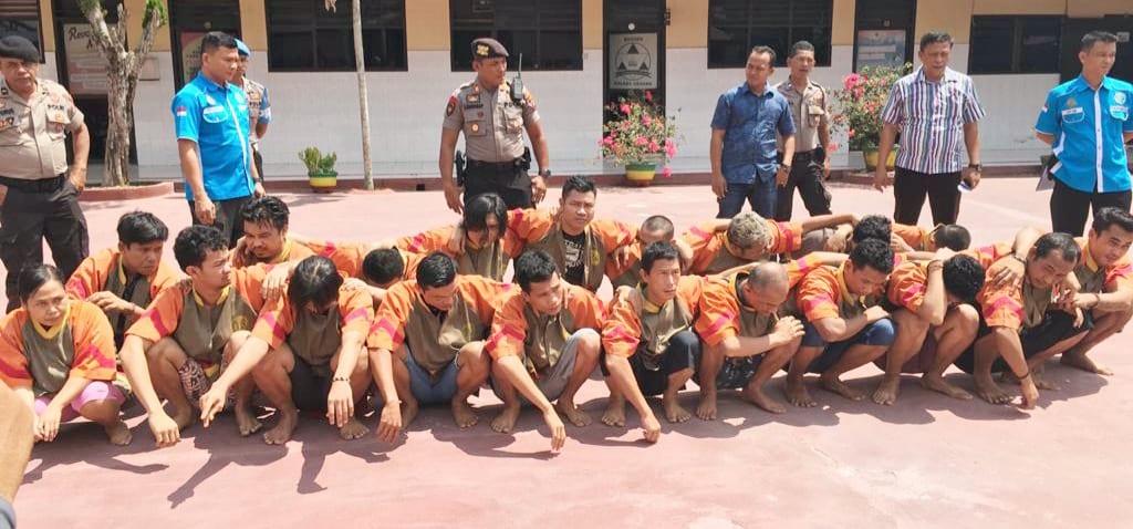 “Sebanyak 40 tersangka dari 28 kasus tindak pidana penyalahgunaan narkoba berhasil kita tangkap, 1 tersangka terpaksa diberi tindakan tegas terukur di kakinya karena melakukan perlawanan terhadap petugas saat akan ditangkap,” ujar Kapolres Asahan AKBP Nugroho Dwi Karyanto, di dampingi Kasat Narkoba AKP Antony Tarigan, saat konferensi pers di Mapolres Asahan, Rabu (18/3/2020).