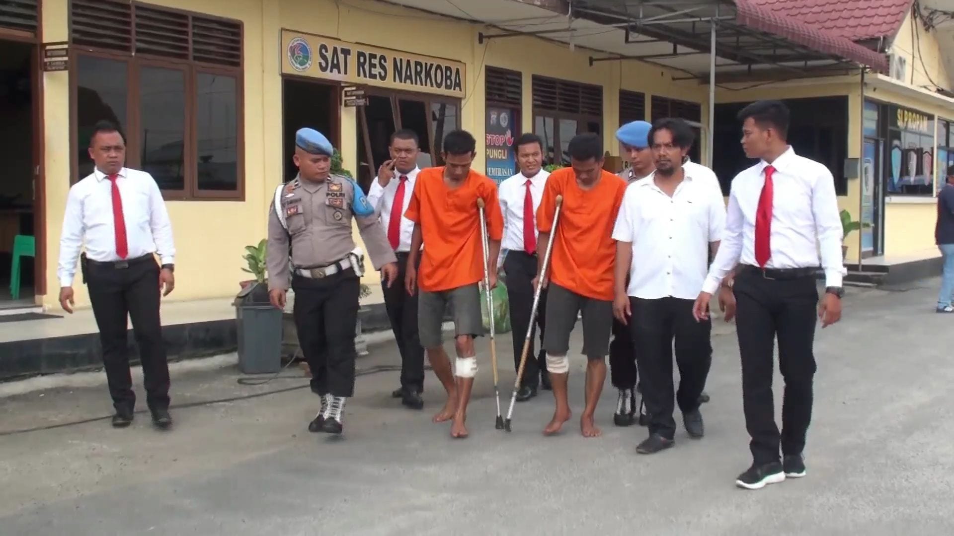 “Penangkapan kedua tersangka berkat informasi dari masyarakat. Atas informasi itu, Kasat narkoba, AKP Henry Tobing SH bersama Kasat Intelkam, AKP Fery Kusnadi SH MH turun ke lokasi dan berhasil mengamankan 2 pelaku berikut barang bukti,” tutur AKBP Ikhwan Lubis.