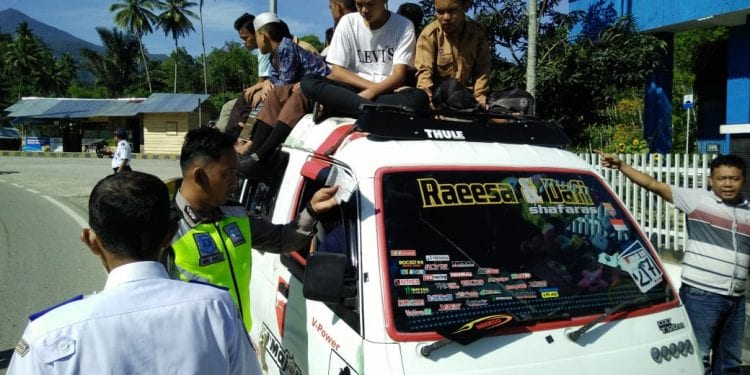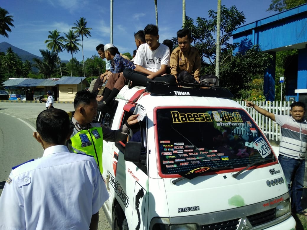 melakukan penyetopan dan penindakan terhadap Mopen Anatra No pol. BB 1373-LR yang membawa penumpang yang berlebih dan diatas Kabin Mobil.