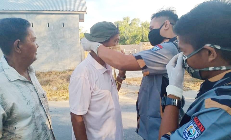 TASLABNEWS, TANJUNGBALAI – Organisasi kepemudaan yang tergabung dalam Generasi Muda Pembela Kesatuan Tanah Air Indonesia Bersatu (GM PEKAT-IB) Kecamatan Tanjungbalai kembali turun ke jalan membagi-bagikan masker gratis kepada masyarakat untuk mencegah penularan wabah Corona Virus Disease 2019 (Covid-19) di Jalan Besar Bagan Asahan, Desa Bagan Asahan Pekan, Kecamatan Tanjung Balai, Kabupaten Asahan, Minggu (29/3/2020) sekira pukul 17.00 Wib