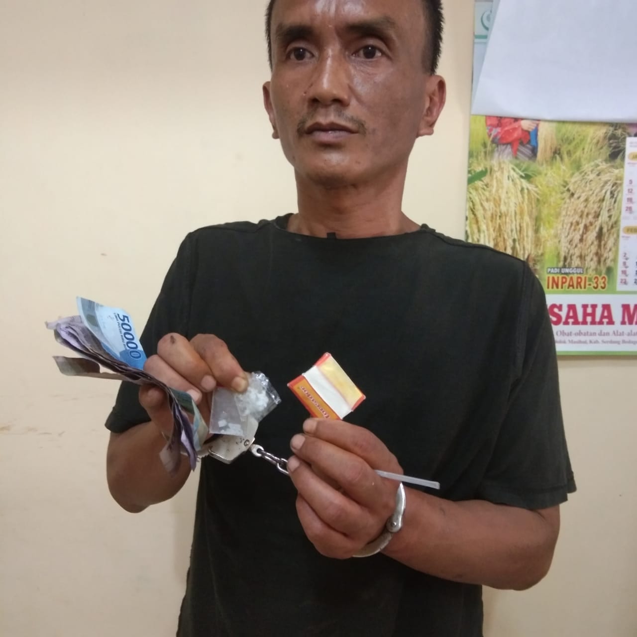 Hasil penangkapan pelaku, tim opsnal unit reskrim Polsek Dolok Masihul menyita barang bukti 4 lembar plastik klip transparan berisikan butiran kristal warna putih di duga narkotika jenis sabu seberat 0,8 gram, 1 pipet yang runcing pada ujungnya di modif menjadi sekop, 1 bal kertas tiktak dengan bungkus bertuliskan teroador dan 1 lembar uang kertas pecahan Rp 50.000, 5 lembar uang kertas pecahan Rp 10.000,.
