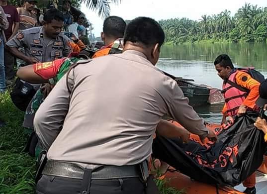 Selanjutnya Tim Gabungan langsung mengevakuasi korban dari sungai dan kemudian dibawa dan diserahkan kepada pihak keluarga di rumah duka. (Ril/Syaf)