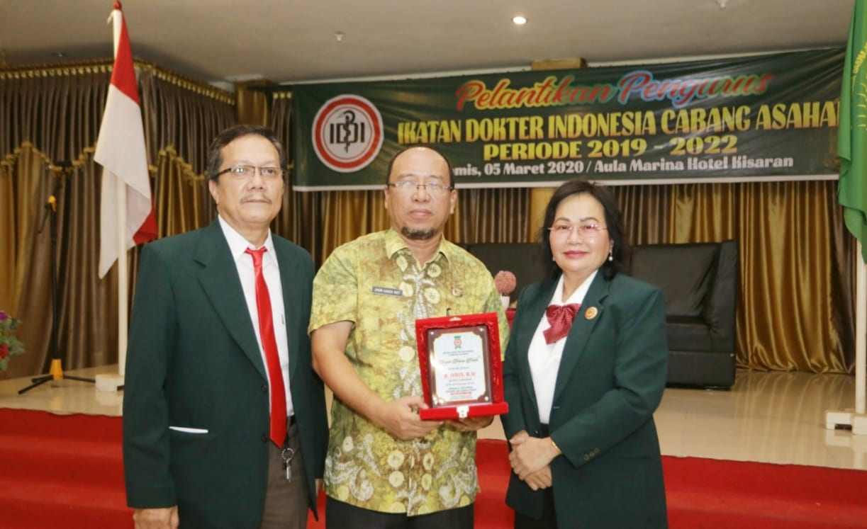 Dalam pentikan tersebut, Asisten Pemerintahan dan Kesejahteraan Rakyat menerima piagam penghargaan dari IDI Cabang Asahan. (mom)