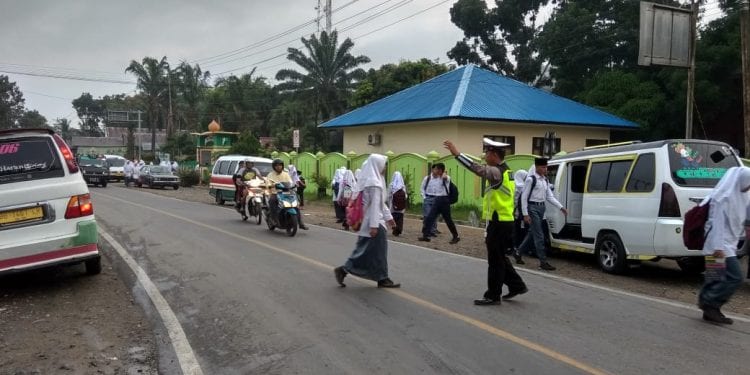 TASLABNEWS, MADINA-Personel Satlantas Polres Madina melaksanakan pengaturan arus lalu lintas di persimpangan dan sekolah yang berada di wilayah hukum Polres Madina. Tujuannya untuk mengantisipasi kemacetan dan kecelakaan lalulintas.