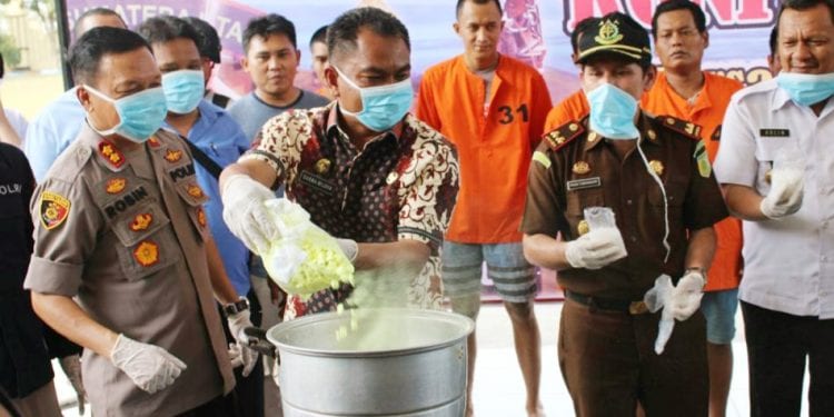 Kegiatan pemusnahan barang bukti narkotika dipimpin langsung Kapolres Sergai, AKBP Robin Simatupang SH MHum dan dihadiri Wabup Sergai, H Darma Wijaya, Kajari Sergai, Paian Tumanggor SH, Kepala BNNK Sergai, Adlin Tambunan, Kasat Pol PP, Drs Pajar Simbolon, Ketua MUI Sergai, H Hasful Huznain, Kabag Ops Kompol Sofyan, Kasat Narkoba AKP Martualesi Sitepu, Tim Laboratorium Forensik Polda Sumut, Kompol Hendri Ginting, para Kapolsek se jajaran Polres Sergai. (mom)