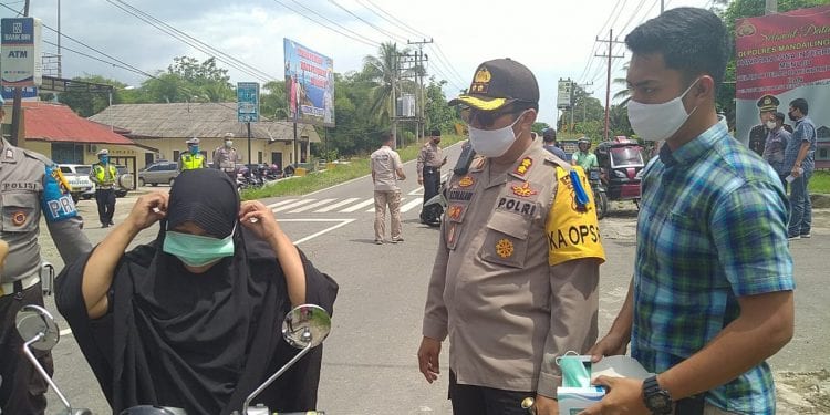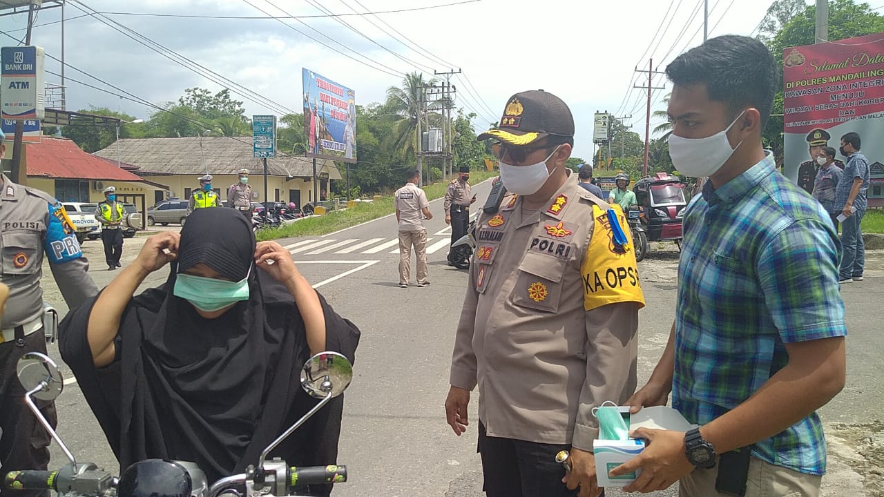 TASLABNEWS, MADINA– Personel Polres Mandailing Natal (Madina) memberikan nasi bungkus dan masker, Jumat (17/4/2020) sekira pukul 11.00 Wib.