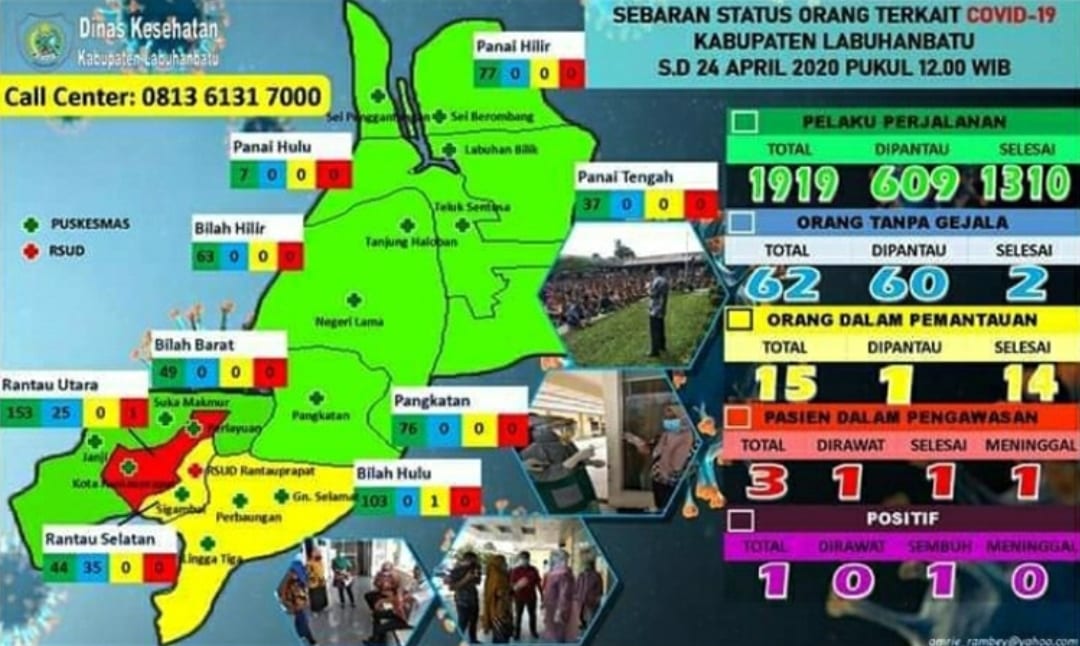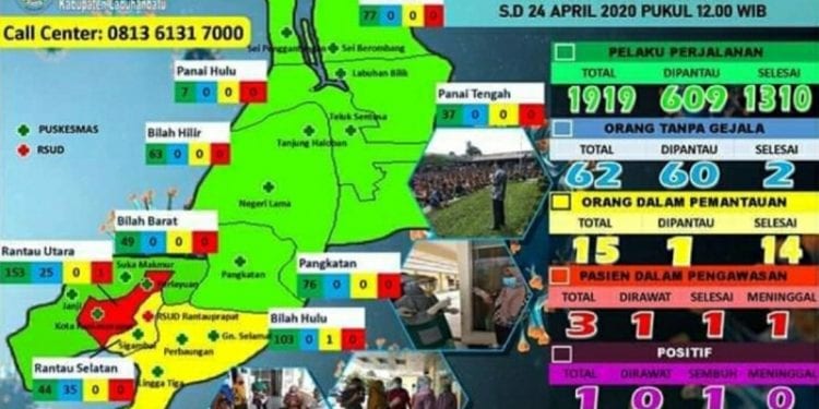 Taslabnews.com, Labuhanbatu Update pandemi coronavirus disease 2019 (Covid-19) di Kabupaten Labuhanbatu, Provinsi Sumatera Utara, pada Jumat (24/4/2020) tercatat 3 orang berstatus sebagai pasien dalam pengawasan (PDP). Jumlah ini masih tetap sama dengan data sehari sebelumnya, Kamis (23/4) kemarin.