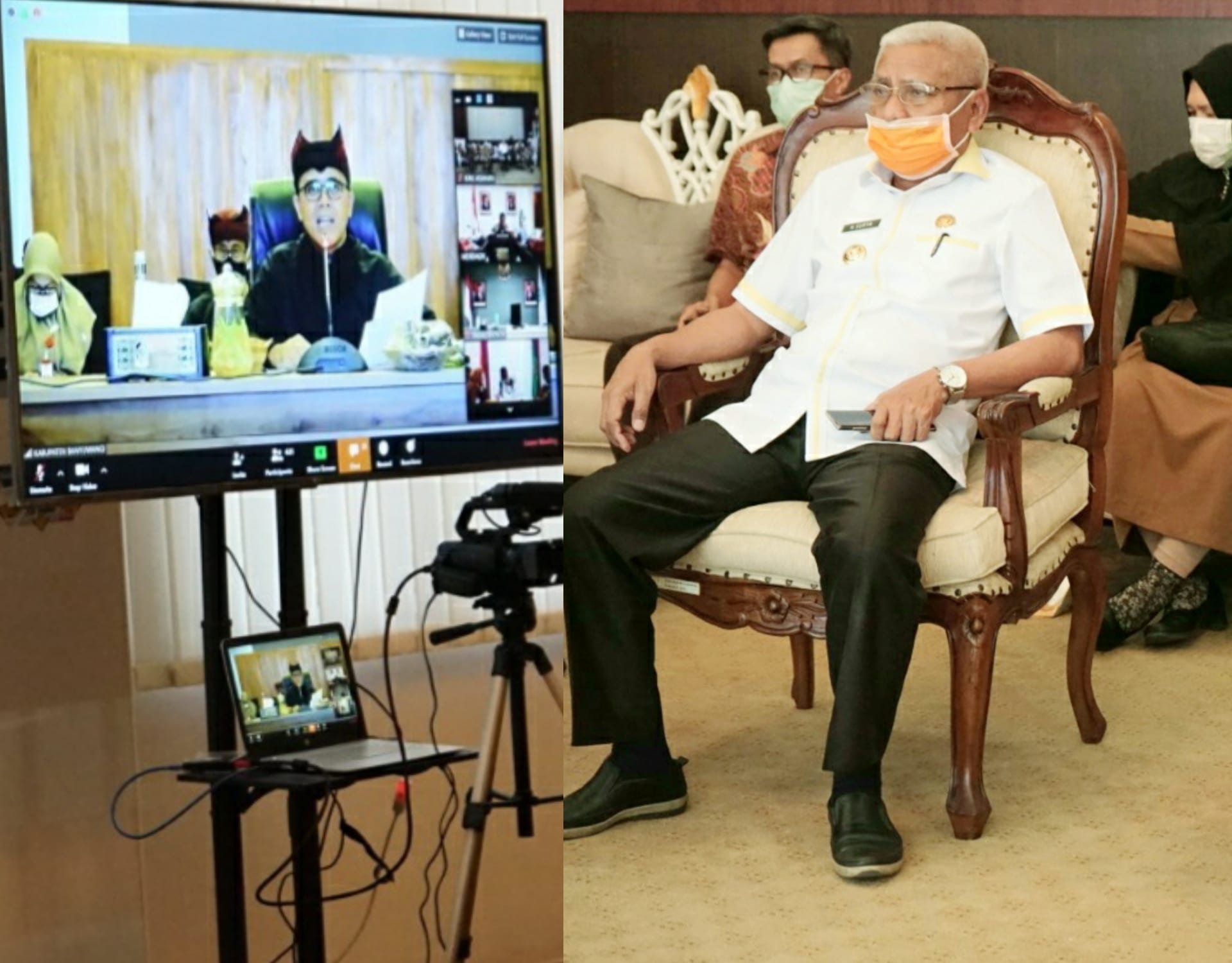 Turut hadir dalam video conference tersebut, Kepala Dinas Koperasi dan Perdagangan Kabupaten Asahan, Kepala Dinas Kominfo Kabupaten Asahan, Kepala Dinas Perizinan Kabupaten Asahan, Kepala Dinas Ketenagakerjaan Kabupaten Asahan dan Kepala dinas yang terkait. (mom)