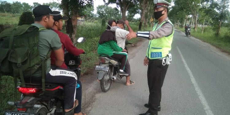 Sat Lantas Polres Tanjungbalai saat melakukan kegiatan penyekatan dan pemeriksaan terhadap setiap kenderaan yang keluar dan masuk Kota Tanjungbalai.