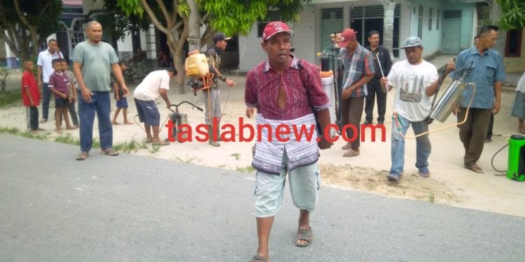 TASLABNEWS, ASAHAN – Antisipasi penyebaran Virus Corona (Covid-19), Desa Serdang Dusun 11, Kabupaten Asahan mengadakan penyemprotan desinfektan di rumah-rumah warga, rumah ibadah, sekolah dan tempat-tempat umum (TTU) lainnya.