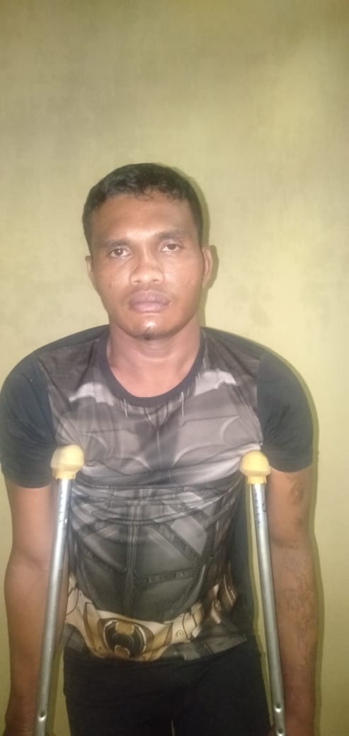 Tersangka Ali Akbar Butar-Butar alias Ali Keriting saat diamankan personil Sat Res Krim Polres Tanjungbalai.