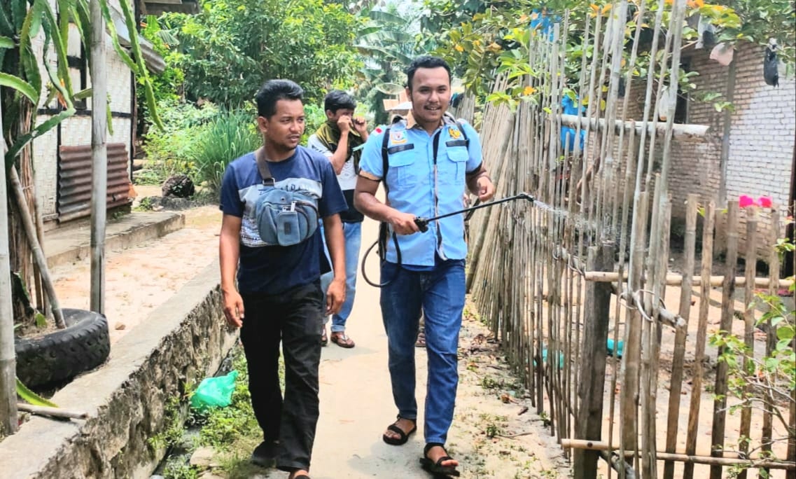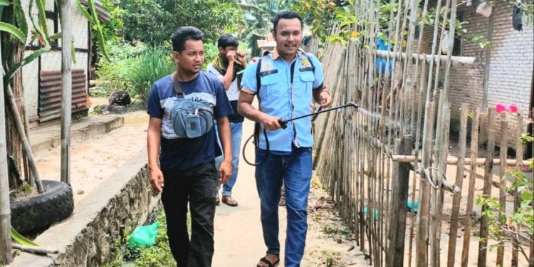 TASLABNEWS, ASAHAN – Antisipasi penularan Corona Virus Disease 2019 (Covid-19), organisasi kepemudaan yang tergabung dalam Generasi Muda Pembela Kesatuan Tanah Air Indonesia Bersatu (GM PEKAT-IB) Pimpinan Kecamatan Bandar Pasir (BP) Mandoge menyemprotan desinfektan di rumah ibadah dan rumah warga di Desa Huta Padang, Kecamatan BP Mandoge, Kabupaten Asahan, Selasa (31/3/2020).