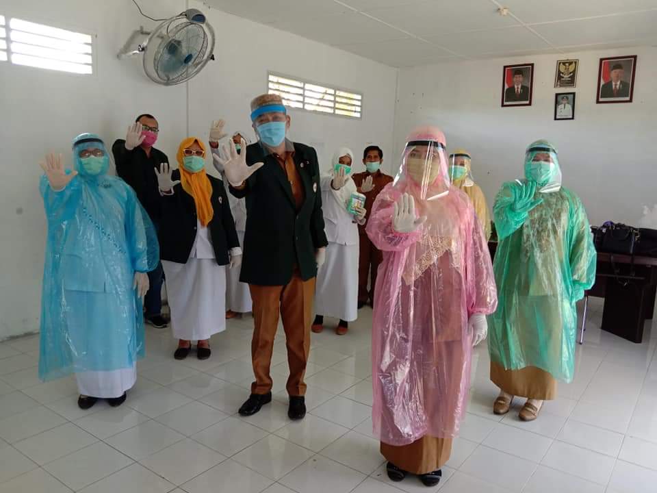 “APD sederhana ini untuk sementara. Karena menunggu APD Standard yang saat ini lagi dalam proses pendistribusiannya oleh pihak BPBD. Insya Allah bermanfaat. Semoga Yankes di Faskes Puskesmas berjalan dengan baik dan tetap eksis melawan Covid 19. Dan semoga sejawat dokter dan Nakes selalu dalam lindungan Allah SWT, amin,” ujarnya, didampingi oleh pihak Dinkes Labuhanbatu dr. Ibnu.
