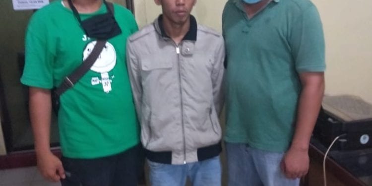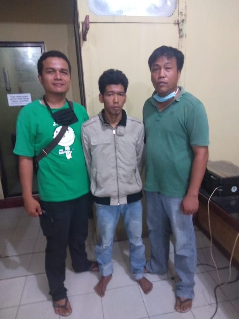 Tersangka Sakban Ramadhan saat diamankan di Polres Tanjungbalai.
