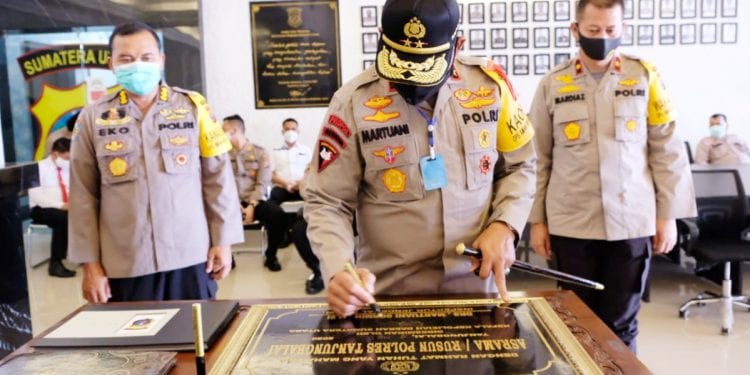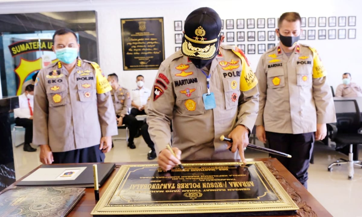 TASLABNEWS, SUMUT – Kapolda Sumut, Irjen Pol Drs Martuani Sormin MSi meresmikan penggunaan 32 unit asrama rumah susun (Rusun) Polres Tanjungbalai, Senin (05/05/20) pukul 10.15 Wib di lobby Adhi Pradana Mapolda Sumut.