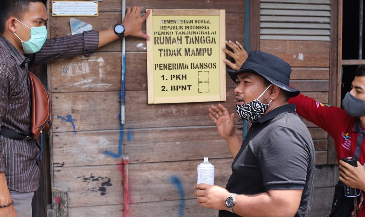 TASLABNEWS, TANJUNGBALAI – Menghindari tumpang tindih penerima bantuan, Walikota beserta Forum Kordinasi Pimpinan Daerah (Forkopimda) Kota Tanjungbalai memberikan tanda/label pada rumah penerima bantuan Program Keluarga Harapan (PKH) dan Bantuan Pangan Non Tunai (BPNT) di Kota Tanjungbalai, Jumat (15/5/2020)