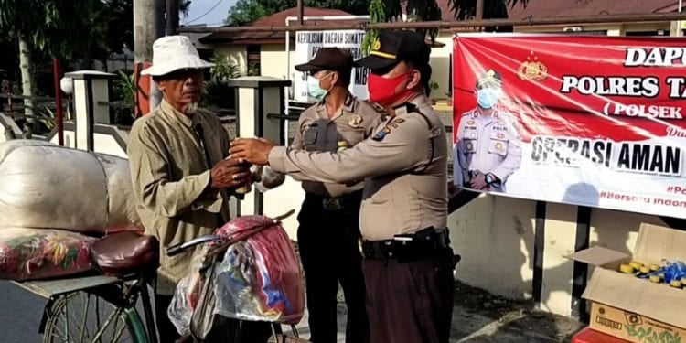 TASLABNEWS, TANJUNGBALAI – Ringankan beban masyarakat dari dampak pandemi Covid -19, Polres Tanjungbalai secara rutin membagikan nasi bungkus dari dapur umum untuk para warga, Kamis (07/05/20).