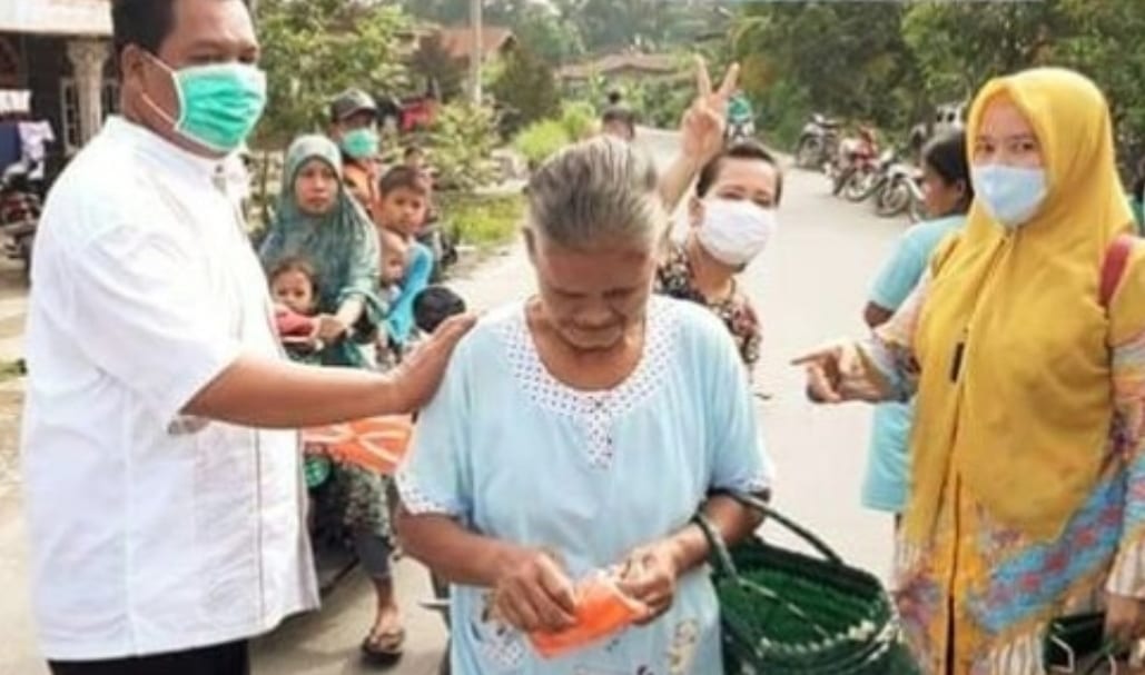 TASLABNEWS, LABUHANBATU – Dalam menyampaikan arahan dari Bupati Labuhanbatu agar masyarakat tetap mengenakan masker saat bepergian, Kepala Desa (Kades) Tanjung Harapan Rustam Efendi turun ke pasar tradisional, Kamis (7/5/2020) siang.
