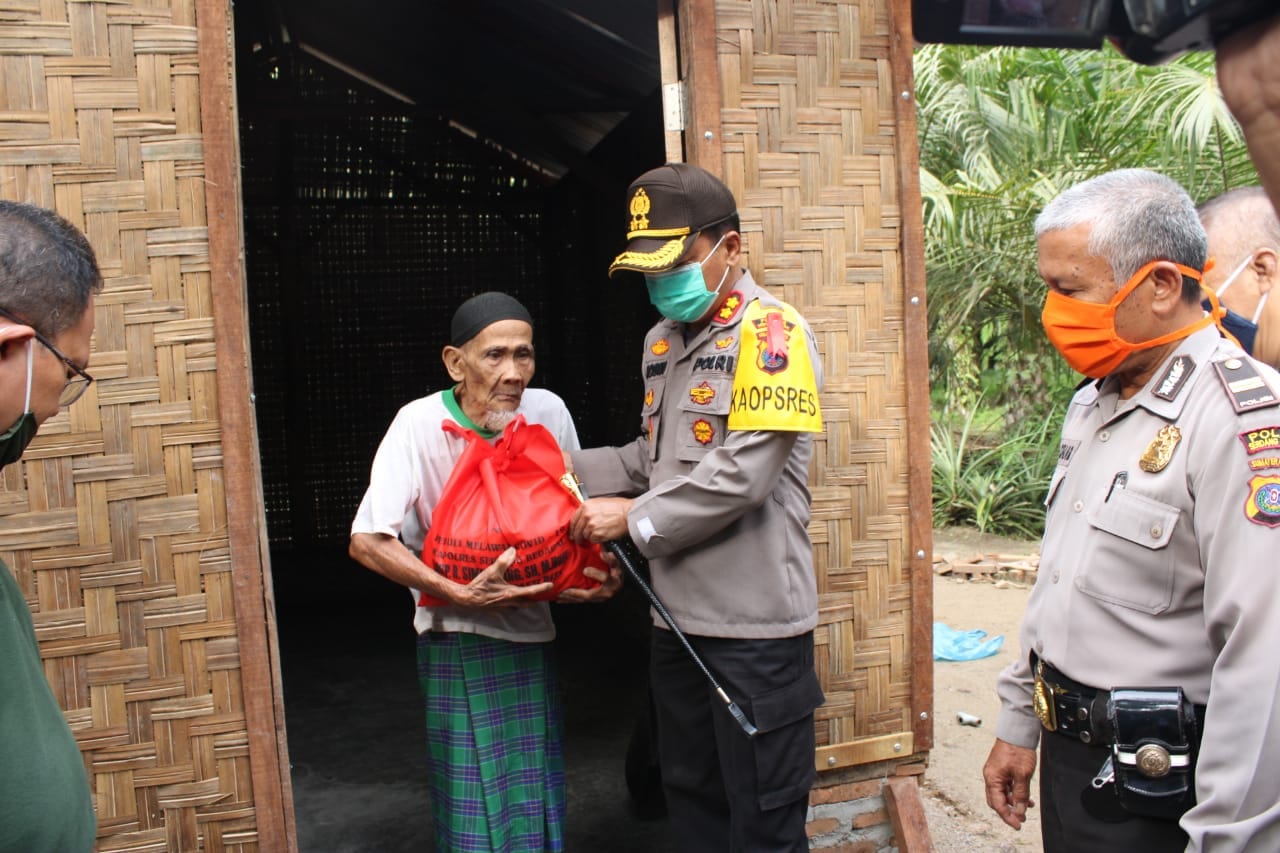 Kapolres Serdang Bedagai AKBP Robin Simatupang SH MHum menyambangi kediaman Kakek Latif bersama beberapa Pengusaha, Jumat (1/5/2020) sore.