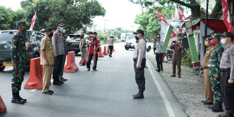 TASLABNEWS, ASAHAN – Untuk memastikan kegiatan pengecekan data kendaraan dan protokol kesehatan bagi penumpang kendaraan dari luar daerah berjalan lancar, Kapolres Asahan bersama Bupati Asahan, Ketua DPRD, Dandim 0208/AS diwakili Kasdim, Para Asisten Setdakab, Kadis Kominfo dan OPD terkait, melakukan kunjungan ke pos pam dan pos check point/sekat Ops Ketupat Toba Tahun 2020.