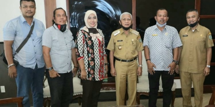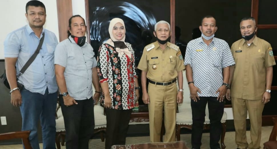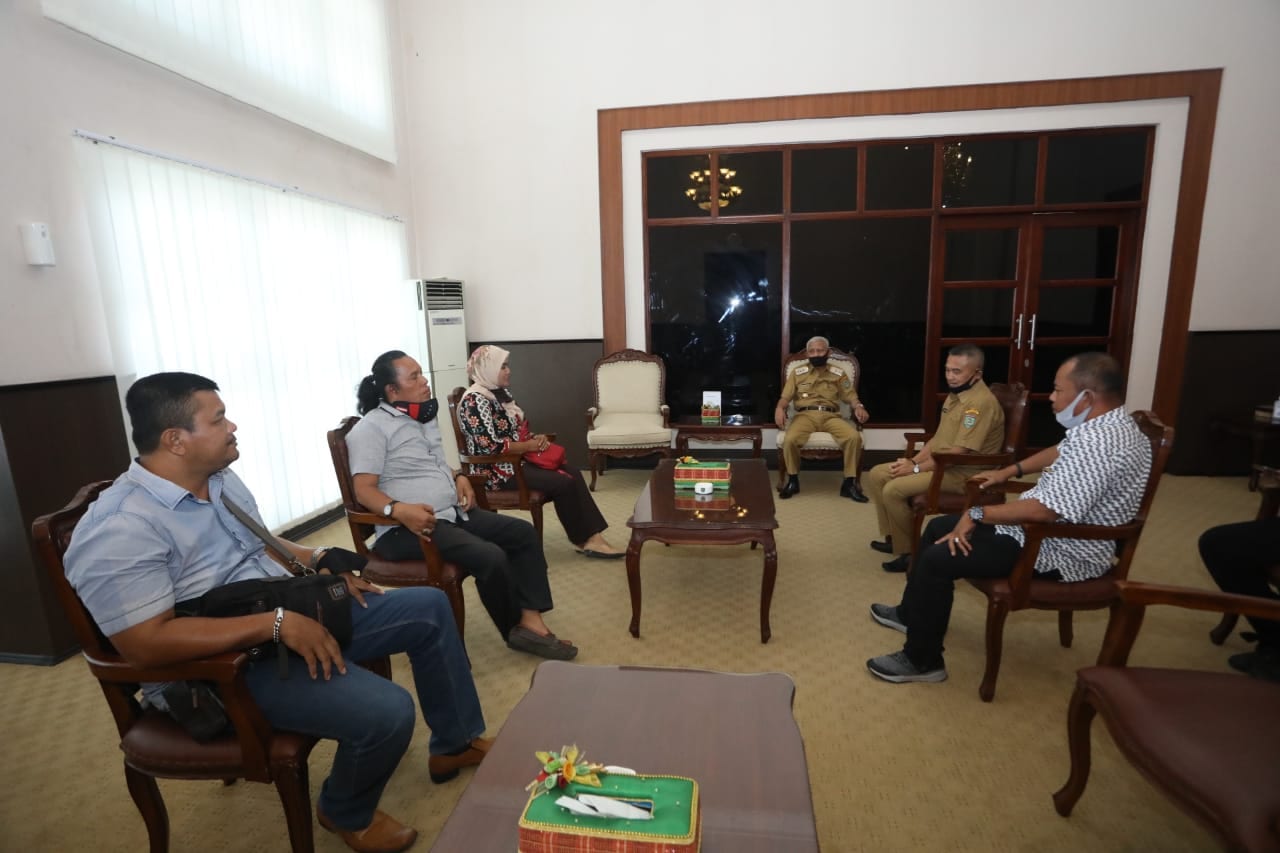 TASLABNEWS, ASAHAN – Untuk mendapatkan masukan dalam kelangsungan musik/hiburan di Kabupaten Asahan, Asosiasi Musik Asahan (Aman) melakukan audiensi ke Bupati Asahan. Kunjungan Aman diterima Bupati Asahan, H Surya BSc didampingi Kepala Dinas (Kadis) Komunikasi dan Informasi (Kominfo) di Ruang Kerja Bupati Asahan, Selasa (2/6/2020)