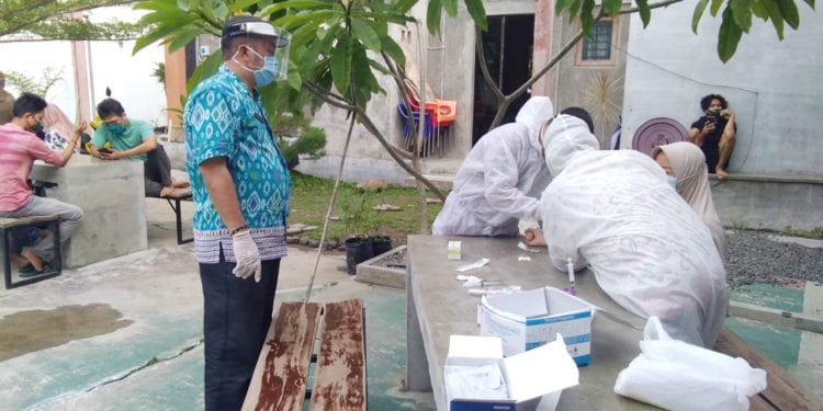 Dan pada Pukul 14.00 Wib (04/06) Juga telah dilakukan uji Rapid Test terhadap 14 orang yang melakukan kontak langsung dilingkungan tempat tinggal pasien dan hasilnya seorang reaktif sedangkan yang 13 orang lagi non reaktif.