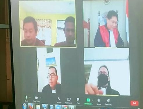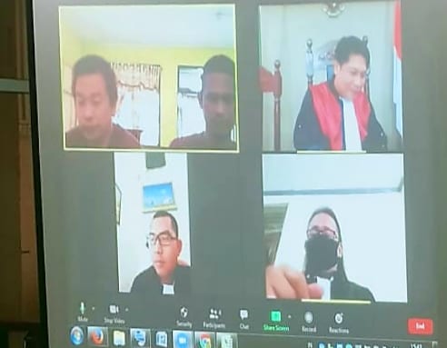 Sidang kasus narkotika jenis sabu dengan terdakwa Rud alias Regar dan SA alias AR, warga Tanjungbalai saat digelar secara telekonference di ruang Cakra Pengadilan Negeri Tanjungbalai.