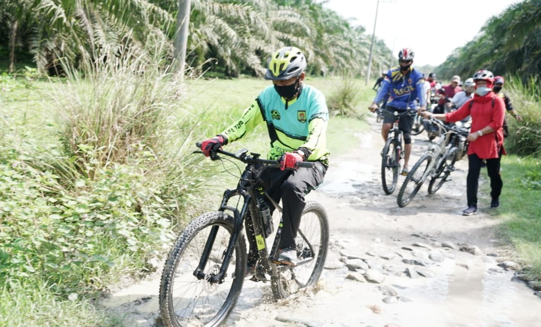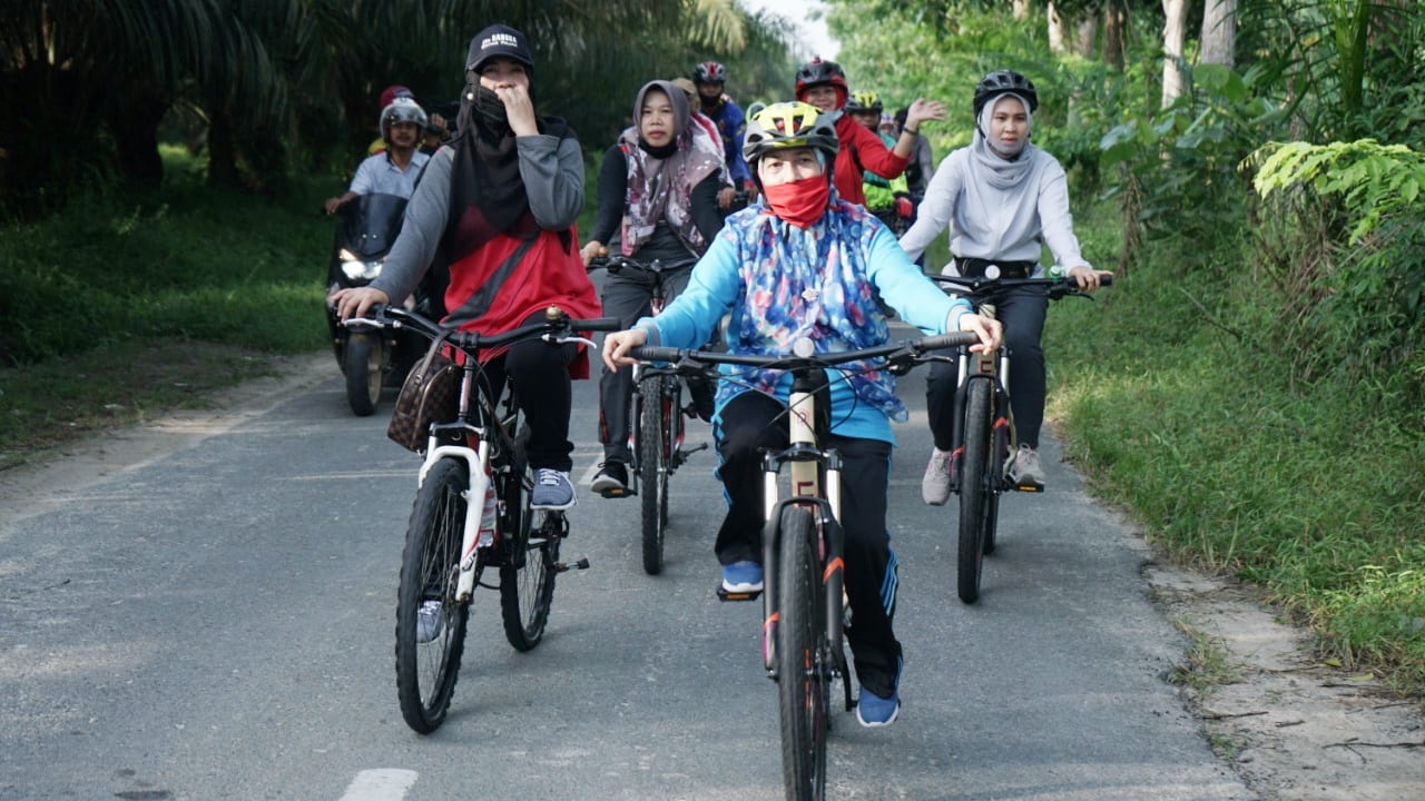 Lebih lanjut Hidayat menambahkan, selain sepeda santai, Bupati juga berbagi masker di Posko Penanganan Covid-19 Kecamatan Rawang Panca Arga.