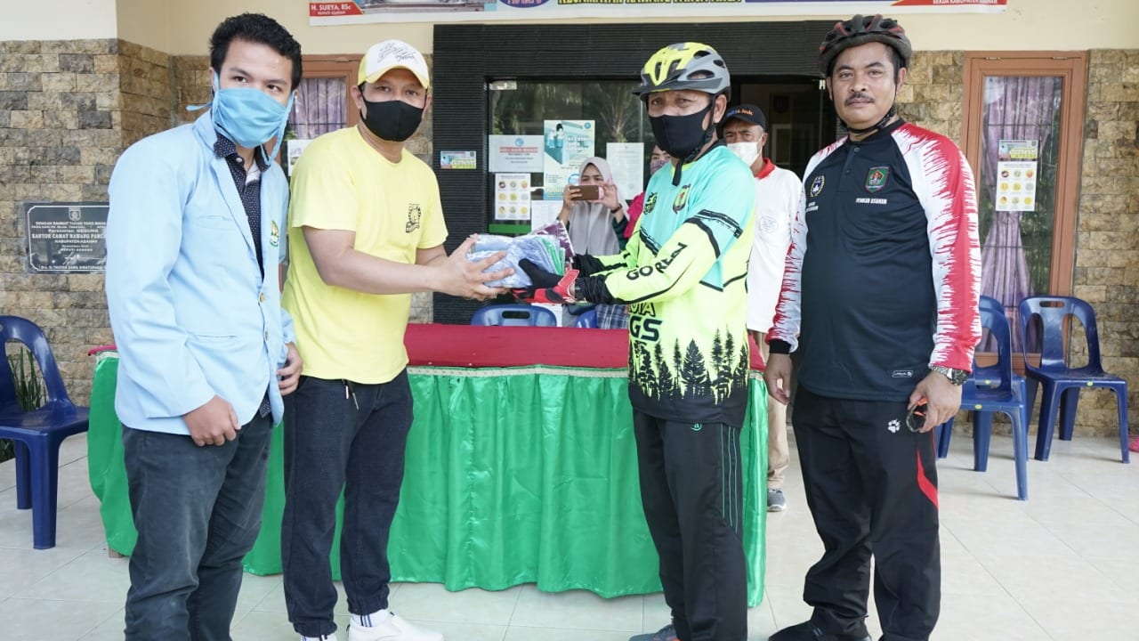 Di sela sela kegiatan sepeda santai, Bupati Asahan juga melakukan bagi-bagi masker. Kegiatan pembagian masker dipusatkan di Posko penanganan Covid-19 Kecamatan Rawang Panca Arga.