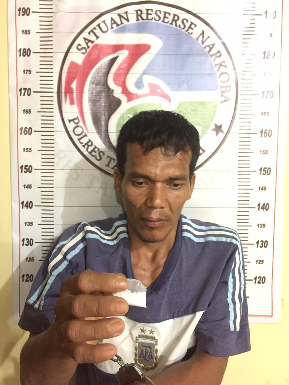 TASLABNEWS, TANJUNGBALAI – Diduga sedang menunggu seseorang sambil mengantongin Narkotika jenis sabu, Ahmad Haris alias Cek Mat (41) yang sedang berdiri di tepi jalan di Jalan Listrik, Kelurahan Pulau Simardan, Kecamatan Datuk Bandar Timur, Kota Tanjungbalai diringkus polisi, Sabtu (4/7) sekitar pukul 18.30 Wib.