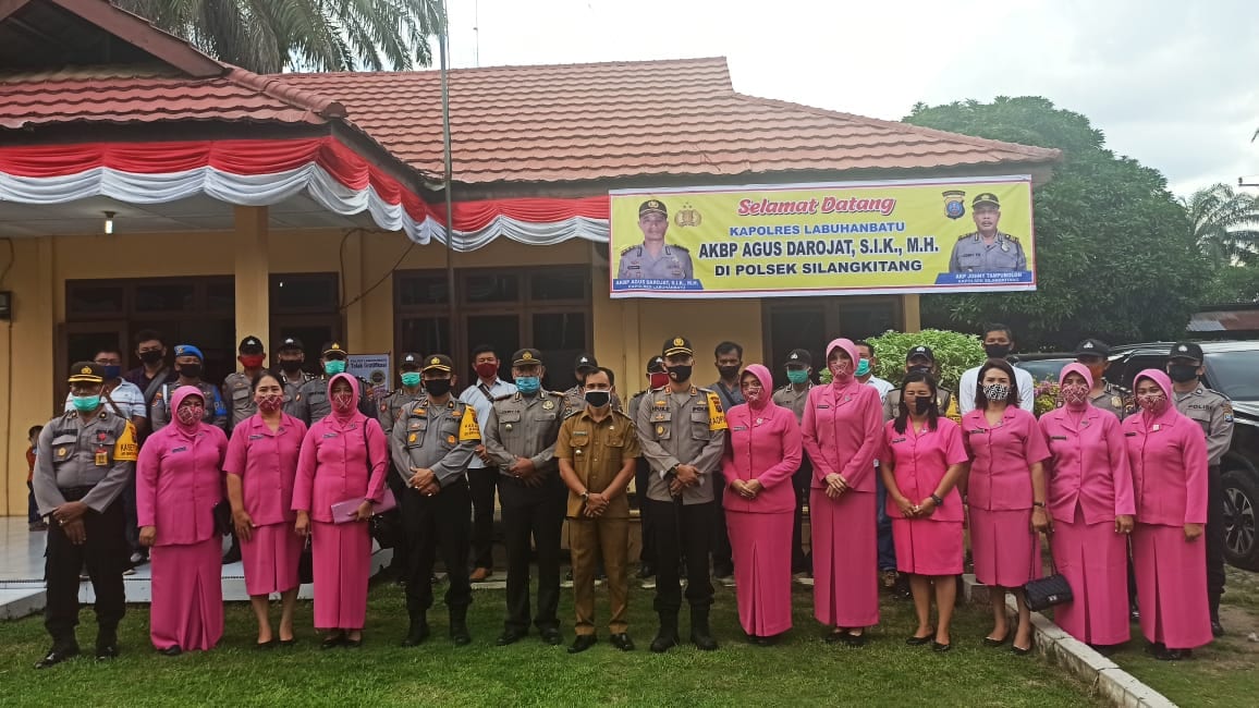 Taslabnews.com, Labuhanbatu – Bersama para pejabat utama Polres Labuhanbatu dan Ibu Ketua Bhayangkari Cabang Labuhanbatu Ny. Hanny Agus Darojat, Kapolres Labuhanbatu AKBP Agus darojat SIK MH melakukan kunjungan kerja ke Polsek Silangkitang, Selasa (21/7/2020) siang.