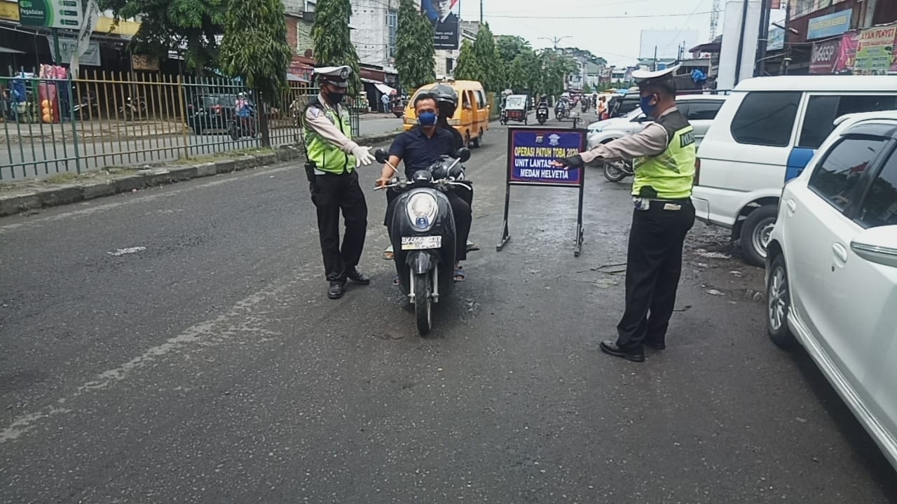 TASLABNEWS, Unit Lantas Polsek Medan Helvetia Polrestabes Medan, melaksanakan Operasi Patuh Toba 2020, selama dua hari belakangan ini di Jalan Kapten Muslim, Kelurahan Sei Sekambing C II, Kecamatan Medan Helvetia, Jum’at (24/07/2020) pagi. Selama razia ada 8 pengendara yang melakukan pelanggaran langsung ditindak. Kemudian 27 lagi diberi teguran.