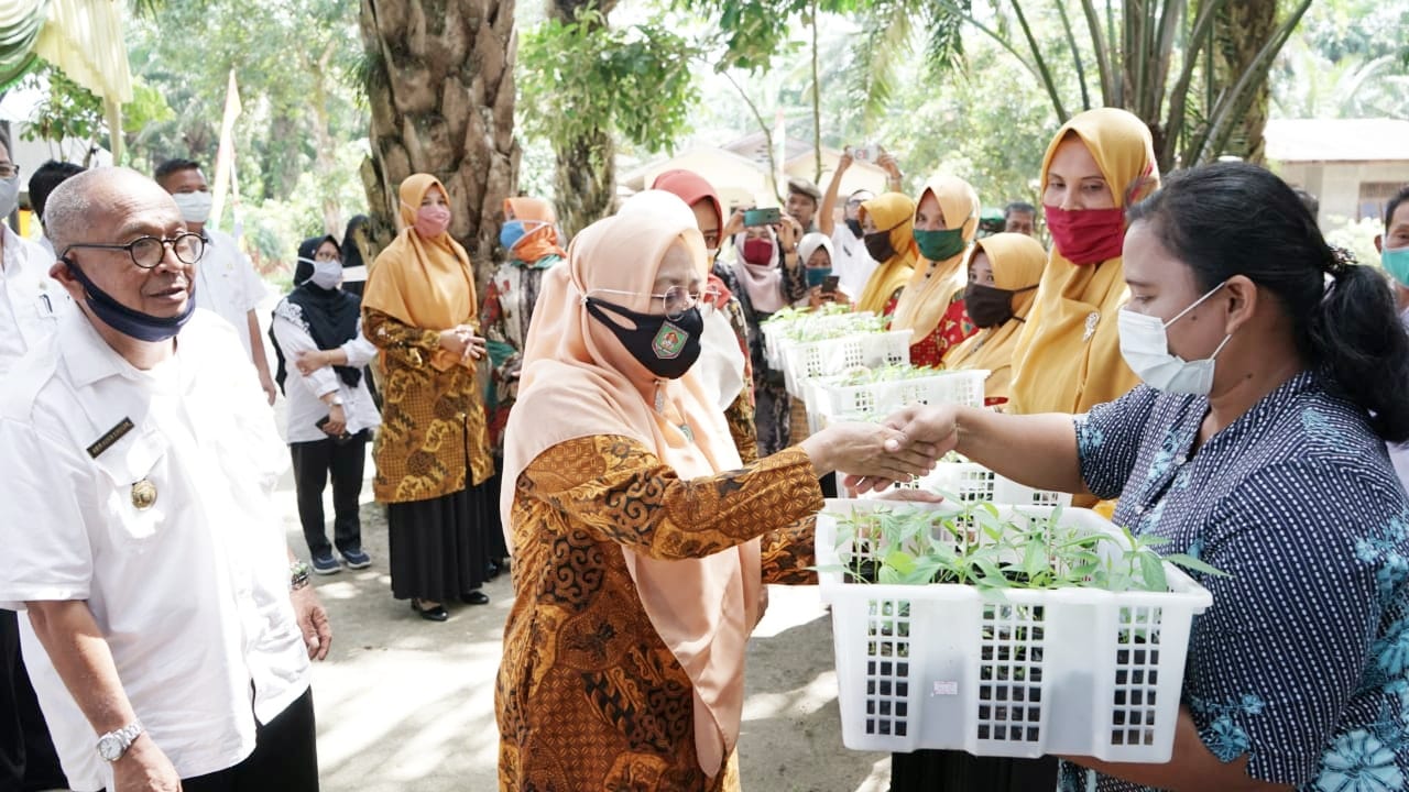 Dalam kesempatan tersebut, Ketua TP PKK Asahan juga menyerahkan 15.000 bibit cabai secara simbolis, Kartu Identitas Anak (KIA), bibit pisang barangan dan Kartu Indonesia Sehat (KIS).