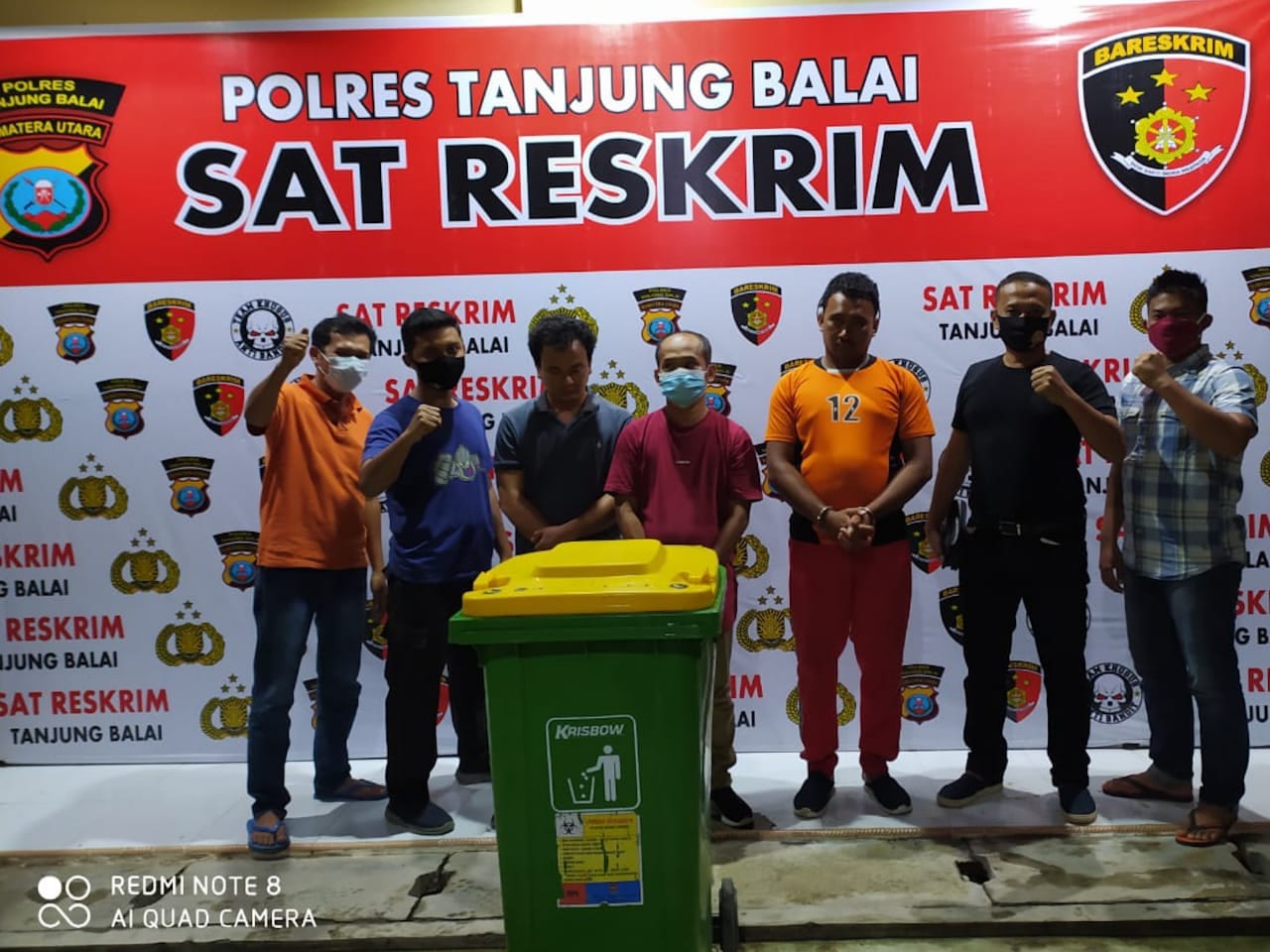 “Selain berhasil mengamankan ketiga tersangka, juga turut diamankan barang buktinya berupa 1 tong sampah plastik warna hijau dengan tutup warna kuning merk Krisbow (digunakan pelaku untuk membawa hasil kejahatan dari gudang) dan 1 unit mobil Toyota Avanza warna hitam type G (digunakan mengangkut hasil kejahatan keluar).