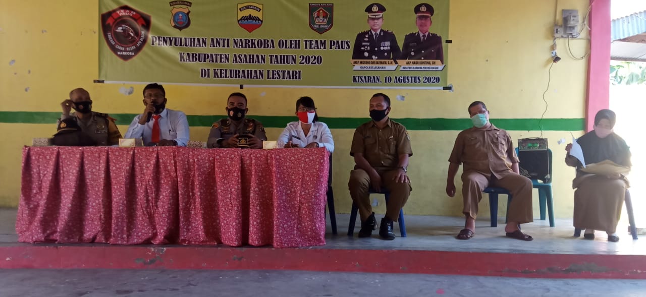 TASLABNEWS, ASAHAN – Guna menanggulangi peredaran narkoba di kalangan generasi muda Kabupaten Asahan, Pemerintah Kabupaten (Pemkab) Asahan bersama Polres Asahan dan Badan Narkotika Nasional (BNN) Kabupaten Asahan, menggelar Penyuluhan Anti Narkoba Oleh Tim PAUS Asahan Tahun 2020, bertempat di Aula Kantor Kelurahan Lestari, Kecamatan Kota Kisaran Timur, Asahan, Senin (10/8/2020).
