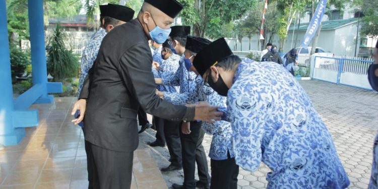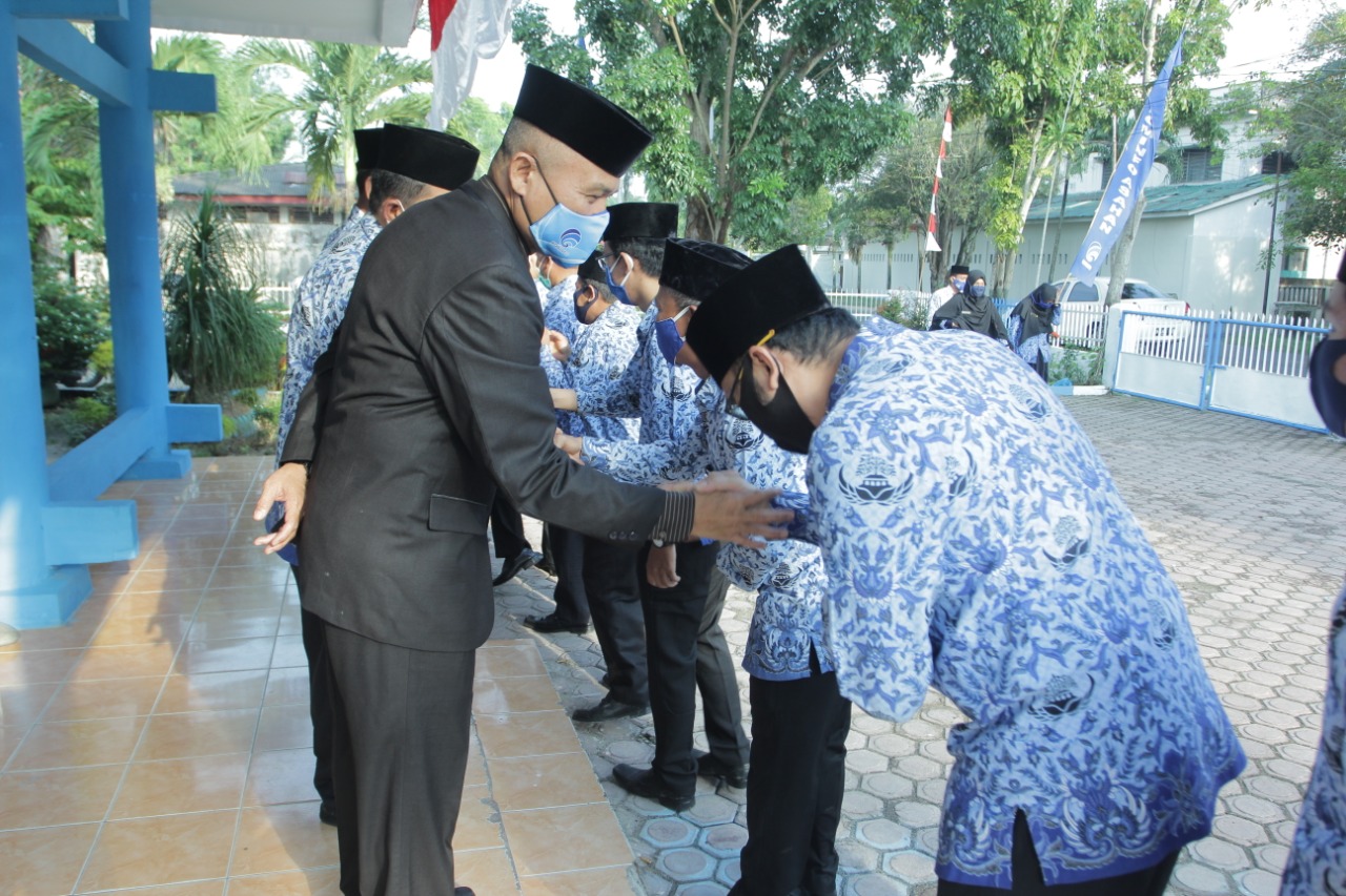 Upacara tersebut juga diikuti oleh seluruh pejabat Eselon III, IV, ASN dan tenaga kontrak di lingkungan Dinas Kominfo Kabupaten Asahan.