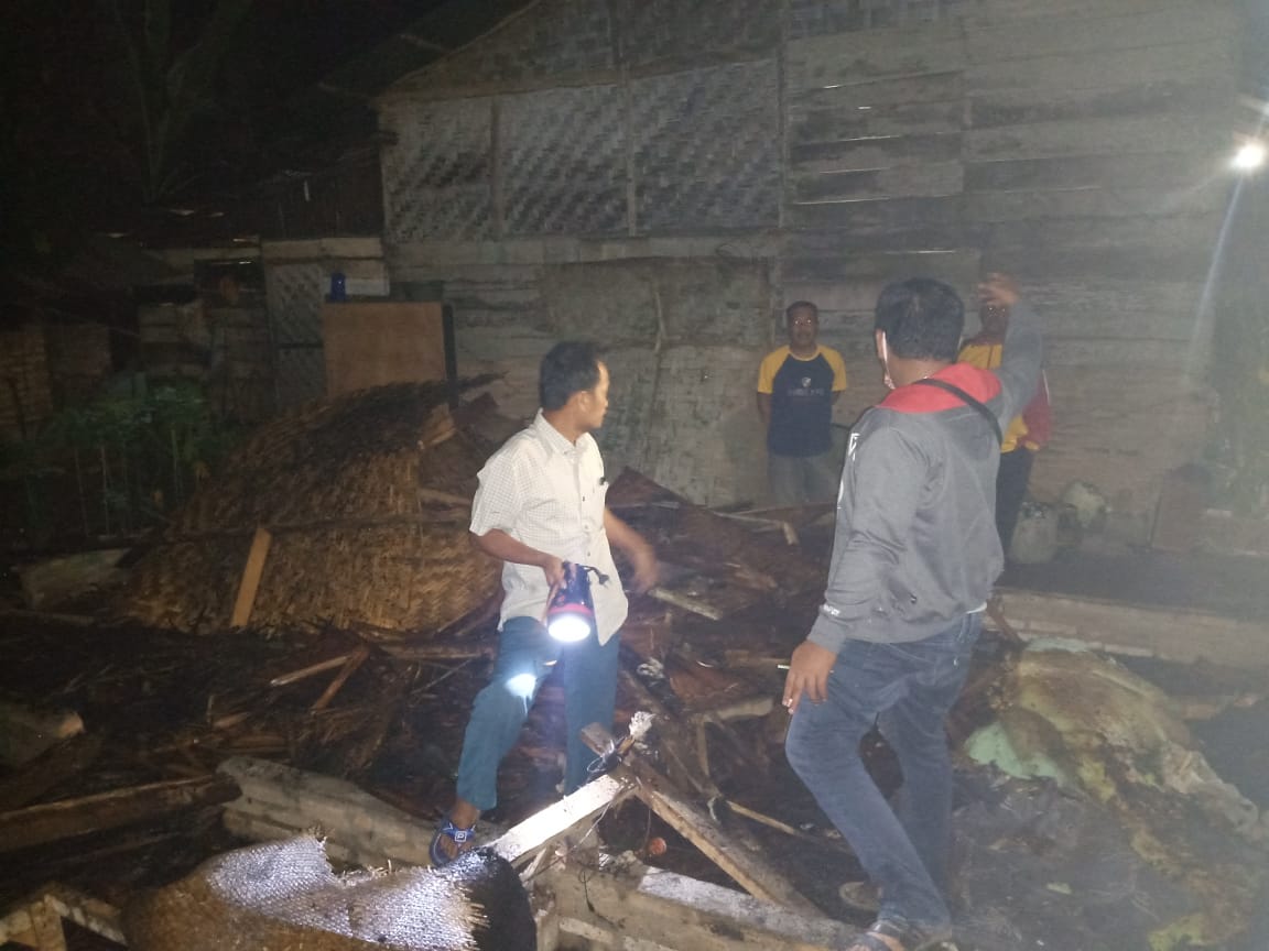 TASLABNEWS, Diduga korsleting listrik, rumah milik kakek Jahari (85) yang terbuat dari dinding tepas dan atap rumbia ludes terbakar, Selasa (4/8/2020) sekitar pukul 20.30 WIB.