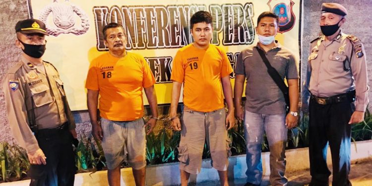 Kedua pelaku, masing-masing berinisal SY (56), warga Desa Tanjung Anom dan MR (27), warga Desa Tanjung Selamat diringkus petugas atas informasi masyarakat yang resah atas peredaran narkoba di sekitar tempat tersebut.
