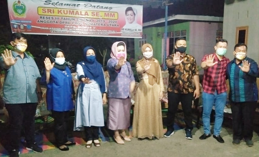 Camat Rawang Panca Arga, Rahmadan Nasution SAP, Kepala Desa serta warga Pondok Bungur menyambut kedatangan Sri Kumala SE MM di Desa Pondok Bungur, dalam rangka reses ke III tahun sidang pertama DPRD Provsu tahun 2019 – 2020, Rabu (9/9/2020).