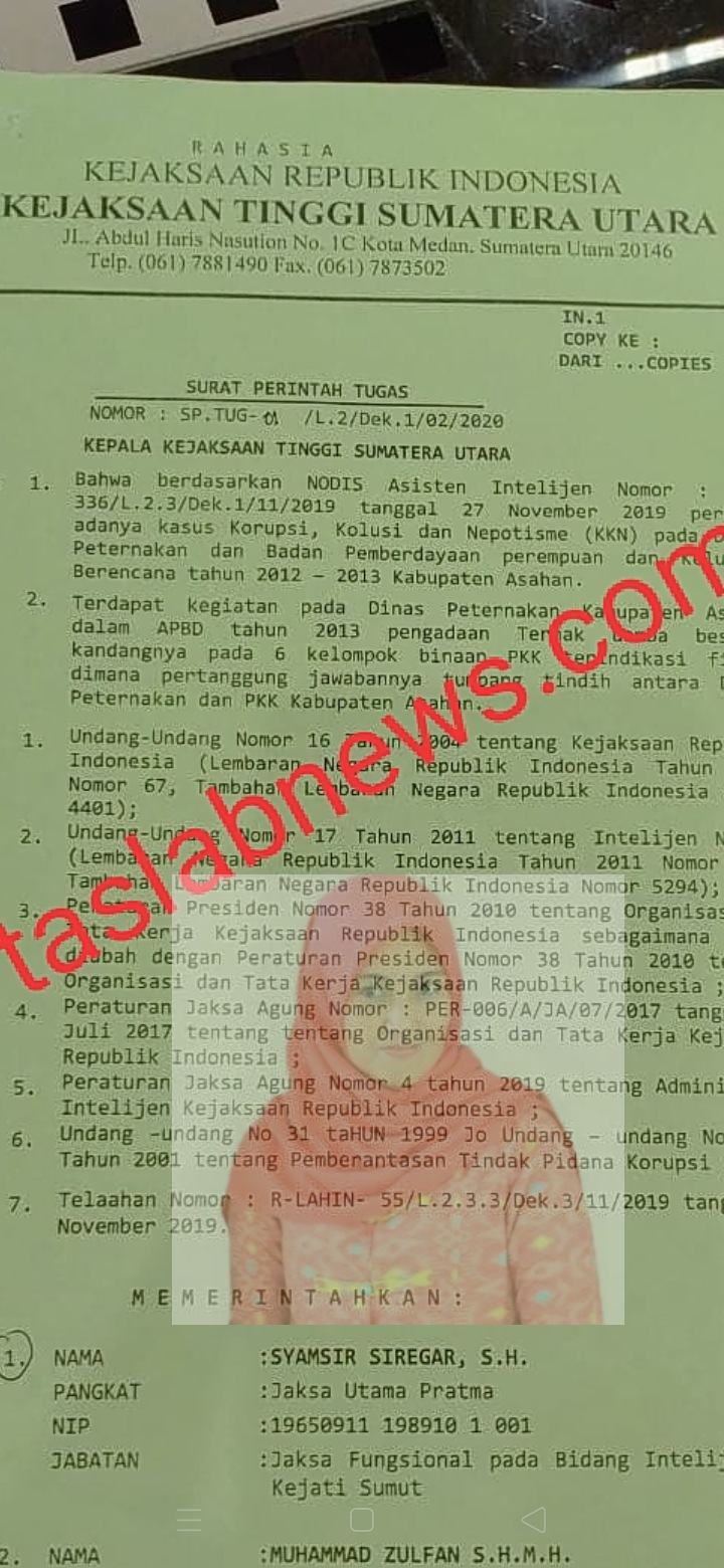 TASLABNEWS, ASAHAN- Surat dari Kejaksaan Tinggi Sumatera Utara (Kejatisu) untuk memeriksa mantan Ketua TP PKK Asahan Hj Winda Fitrika beredar.