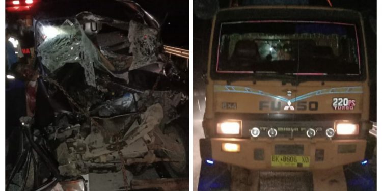 Sedangkan supir dan dua penumpangnya tewas di tempat kejadian dengan kondisi mulut, kuping dan hidung mengeluarkan darah. Sedangkan supir truk tidak mengalami luka.