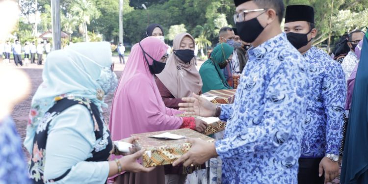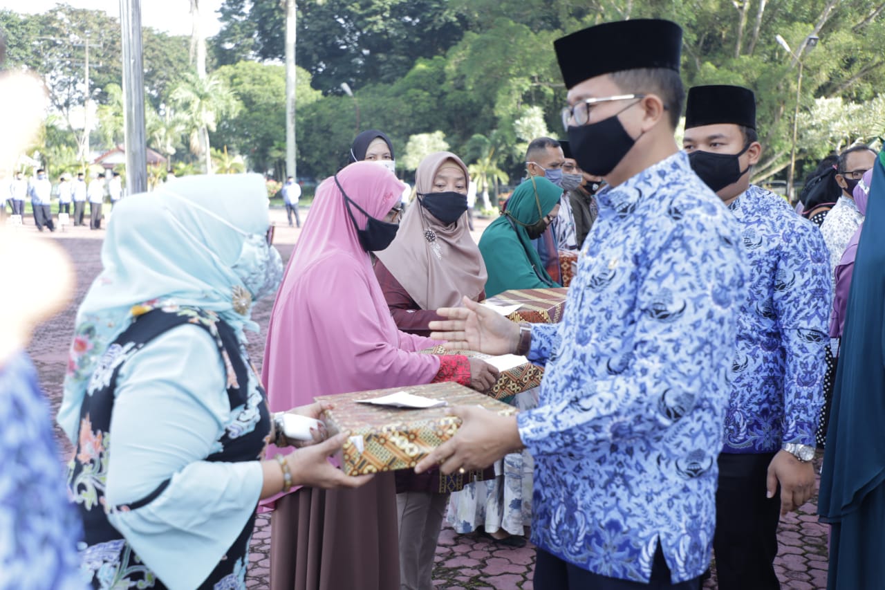 Pada upacara ini beliau memberikan penali kasih kepada 60 ASN yang telah pensiun tahun 2020 dan bantuan duka cita kepada 10 keluarga ASN yang telah meninggal dunia sekaligus mengucapkan terima kasih atas pengabdiannya di Pemkab Asahan selama masa kerja bapak dan ibu. (RIL/Syaf)