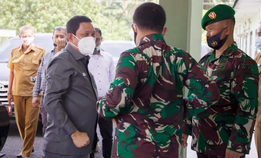 TASLABNEWS, LABUHANBATU – Dalam rangka membahas penegakan Peraturan Bupati Nomor 43, tentang percepatan penanganan Covid-19, Pejabat Sementara (Pjs) Bupati Labuhanbatu, Drs H Mhd Fitriyus SH MSP melakukan kunjungan kerja ke Makodim 0209/LB, Pjs Bupati Labuhanbatu.