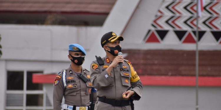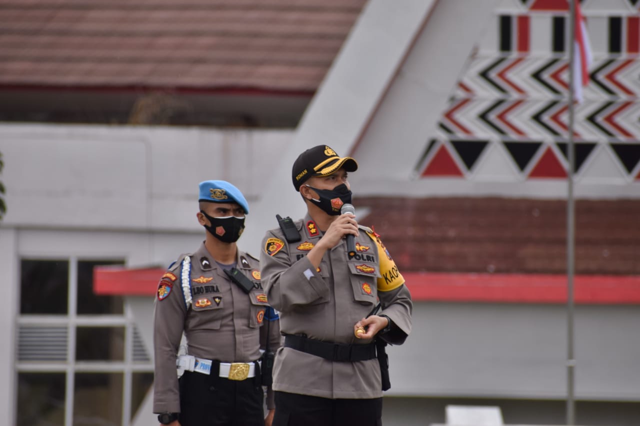 TASLABNEWS, TAPSEL – Kapolres Tapanuli Selatan AKBP Roman Smaradhana Elhaj SH SIK MH memimpin pelaksanaan Apel Konsolidasi Pra Pengamanan Aksi Unjuk Rasa Penolakan RUU Omnibus Law di Kantor Bupati Tapsel, Selasa (20/10/2020).