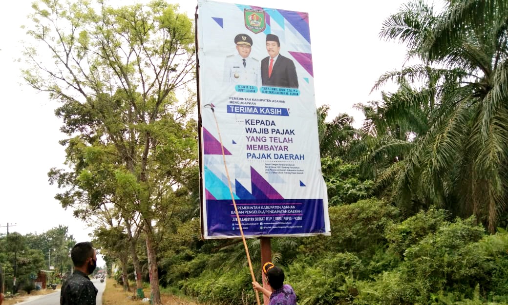 TASLABNEWS, ASAHAN – Menjaga netralitas, Panitia Pengawas (Panwas) Pilkada Kabupaten Asahan menertibkan spanduk-spanduk program Pemerintah Kabupaten Asahan yang memuat foto maupun gambar Bupati dan mantan Sekda Kabupaten Asahan.